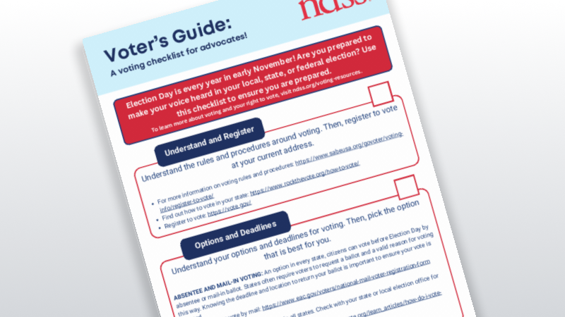 The NDSS Advocacy and Public Policy team has developed several free resources to support advocates in their advocacy at the local, state, and federal levels. Resources are organized based on categories on the right-hand side of this page.